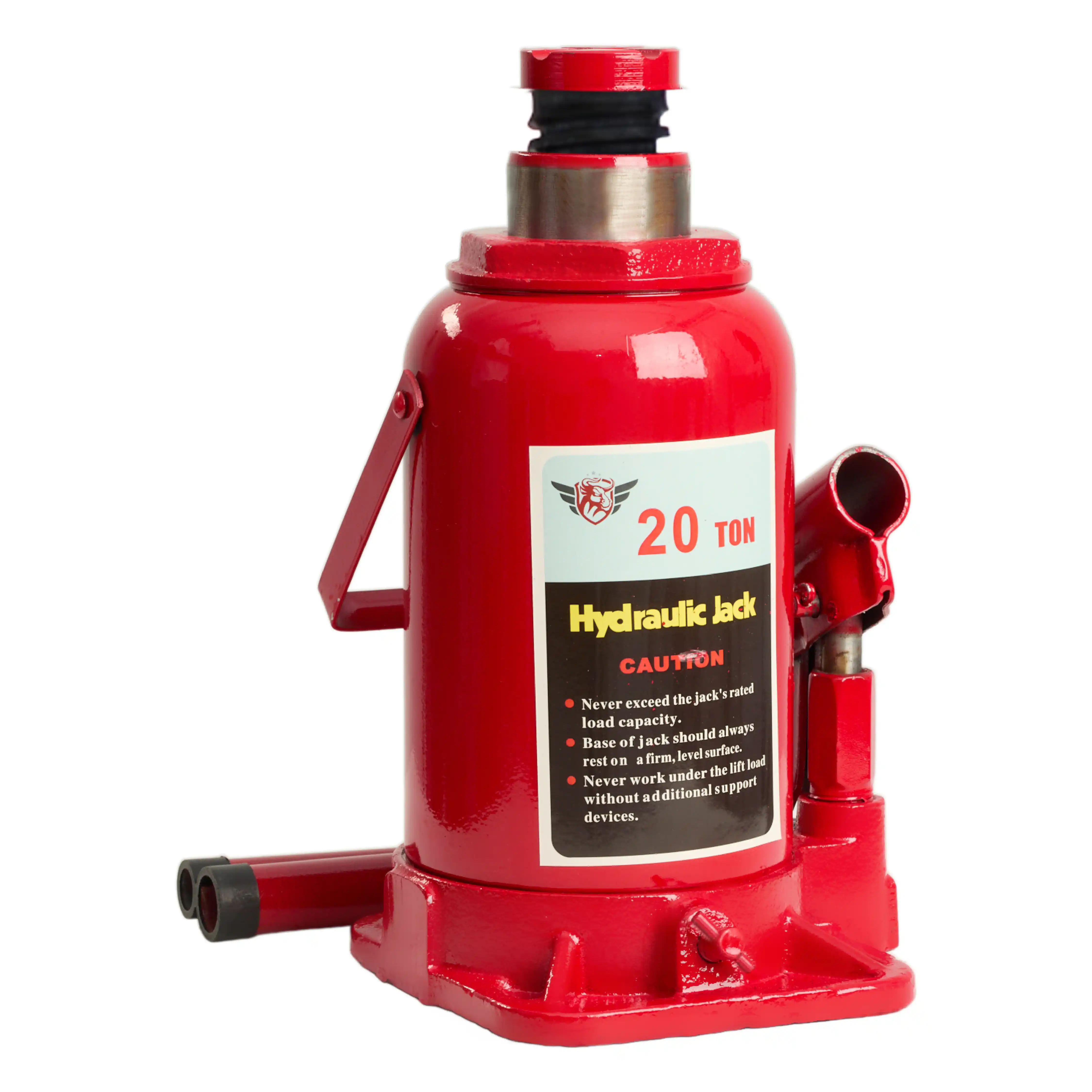Heavy-duty 20-ton bottle jack with flexible height, efficient pump, and safety valve for smooth lifting of large vehicles.