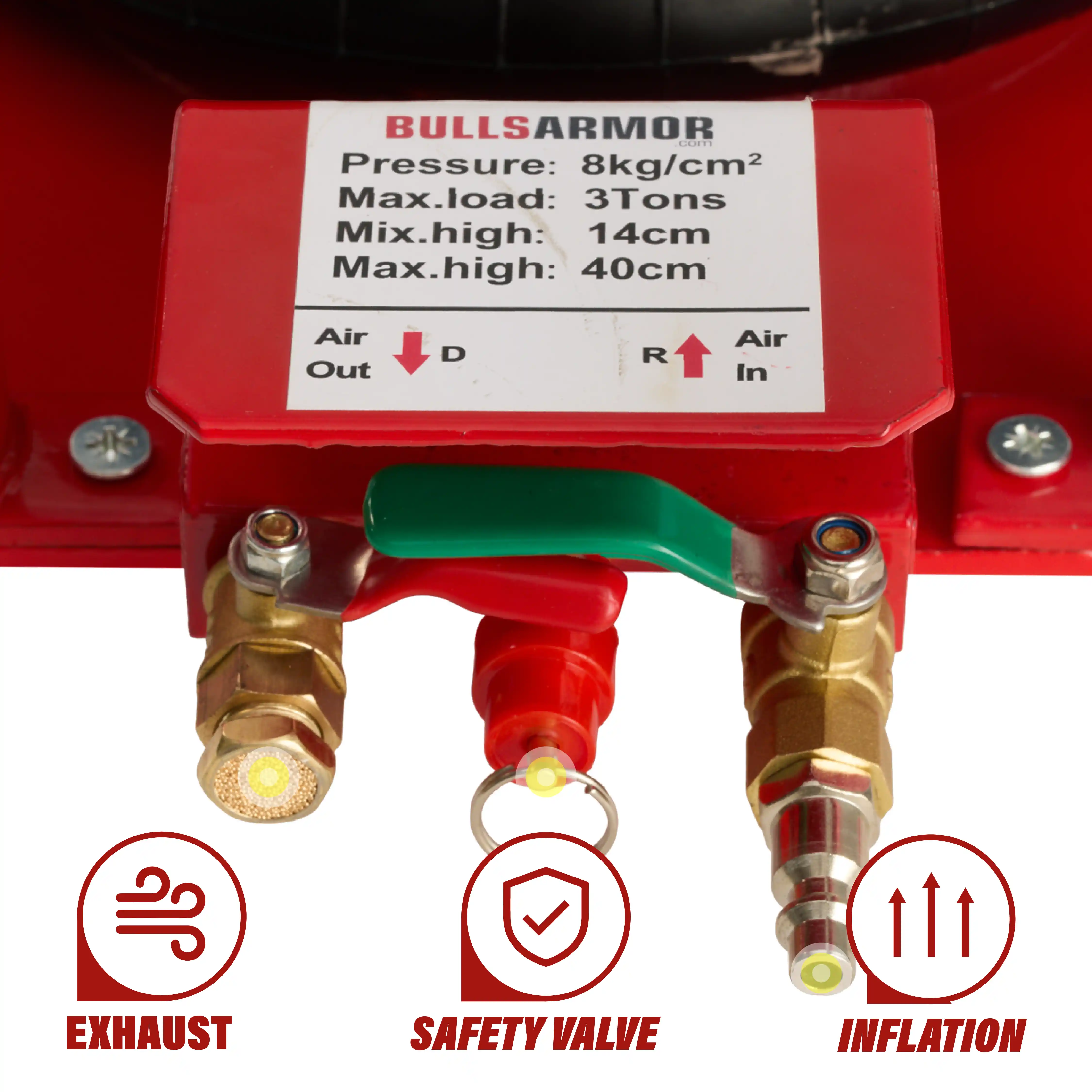 The BullsArmor Air Jack 3 Ton is a compact, powerful vehicle lifting solution capable of lifting up to 6,600 lbs. Engineered with premium materials, it offers precision, ease, and durability. Its short handle design makes it portable and suitable for various vehicle conditions.
